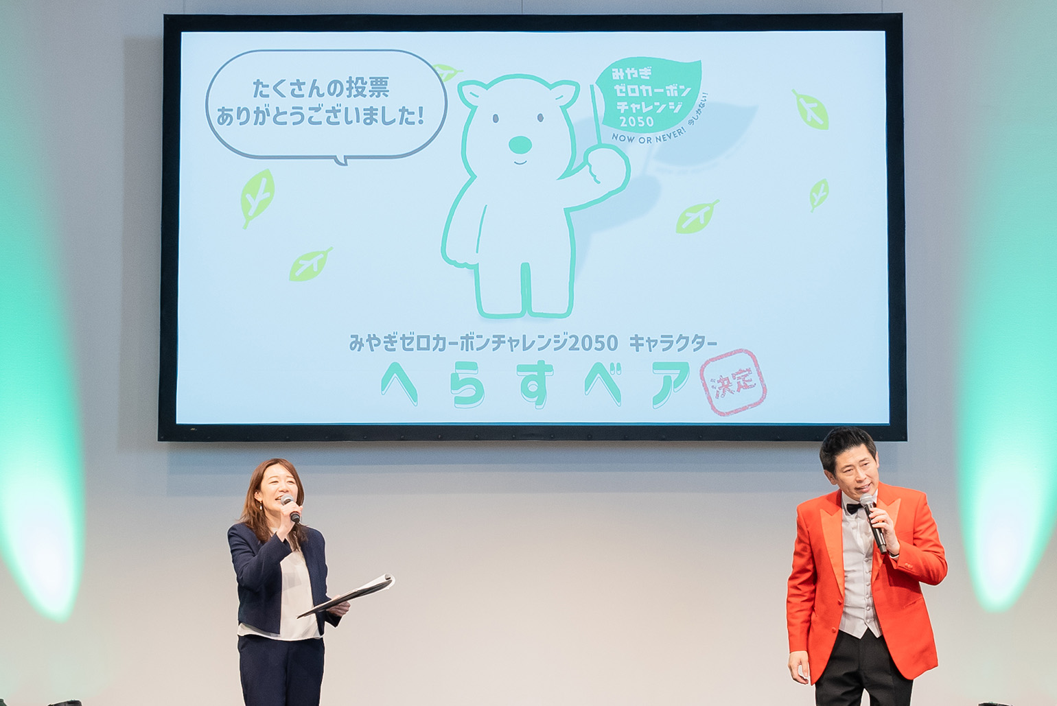 また、トークショー内で「みやぎゼロカーボンチャレンジ2050」キャラクターの名前も発表。 皆さまの投票により「へらすベア」に決定いたしました。