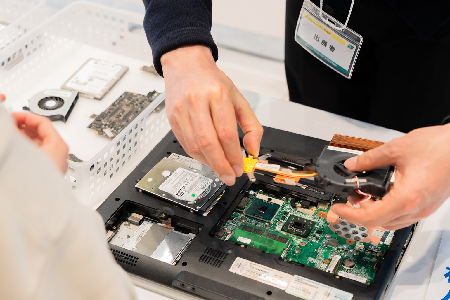 パソコン体験ゲームのほか、普段見ることのできないパソコン内部や部品を展示。希少な資源がどのように使われているのかを多くの方に学んでいただくことができました。