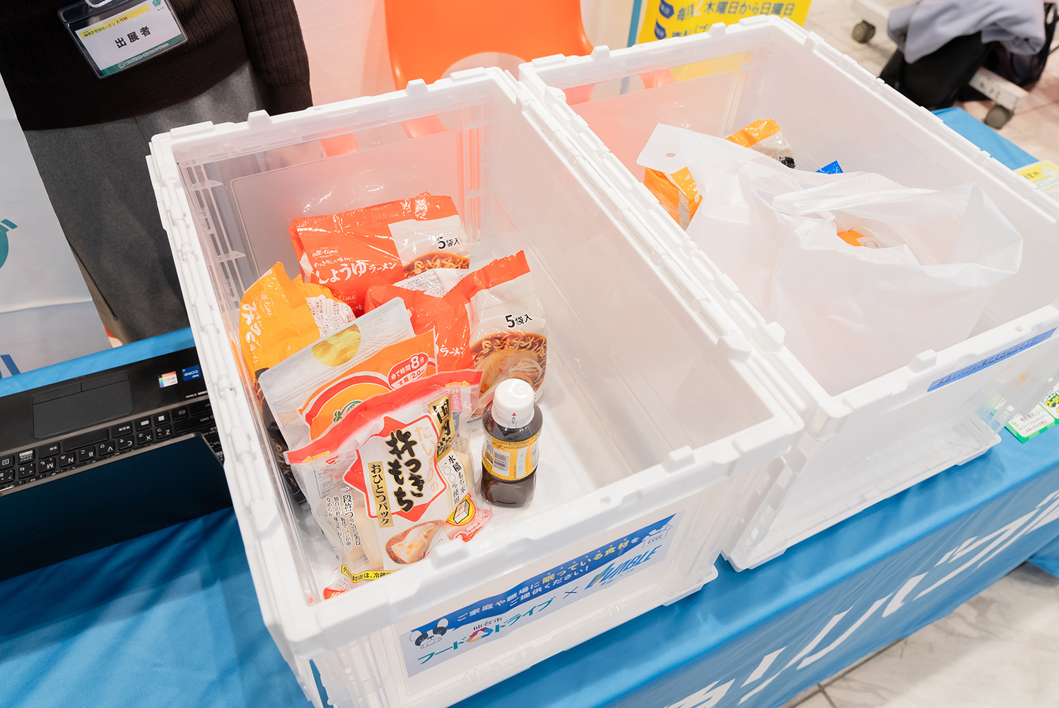 会場では、ご家庭で使い切れなくなった食品や、不要となり廃棄が見込まれる衣服の回収も行いました。集まった食品はフードバンク団体を通じて必要とされている方々へ提供させていただくほか、古着は織物繊維、リメイク等に再利用させていただきます。ご協力ありがとうございました。