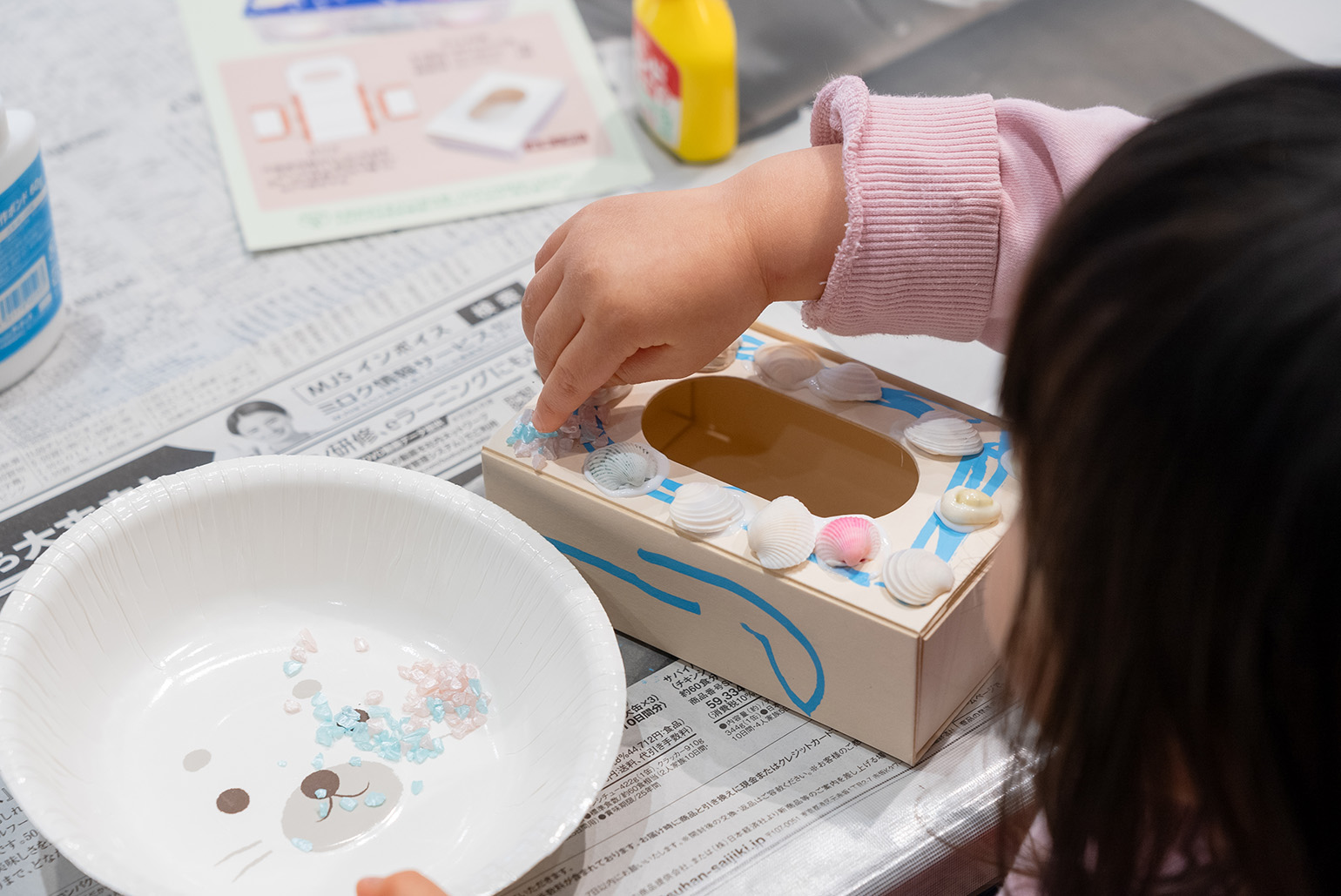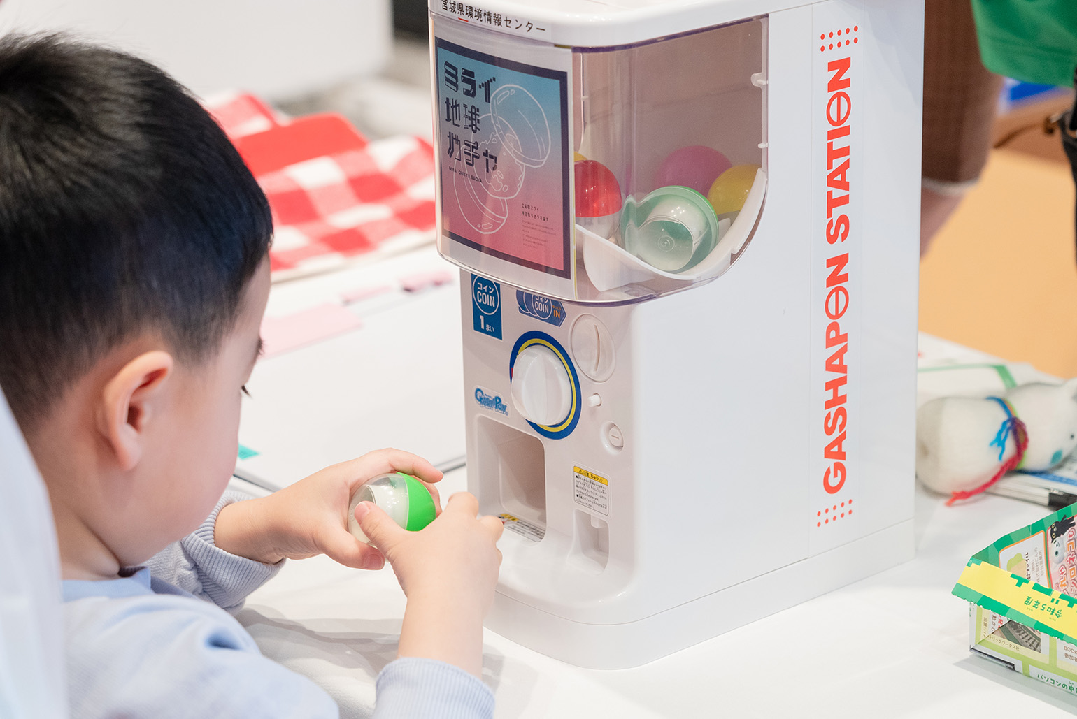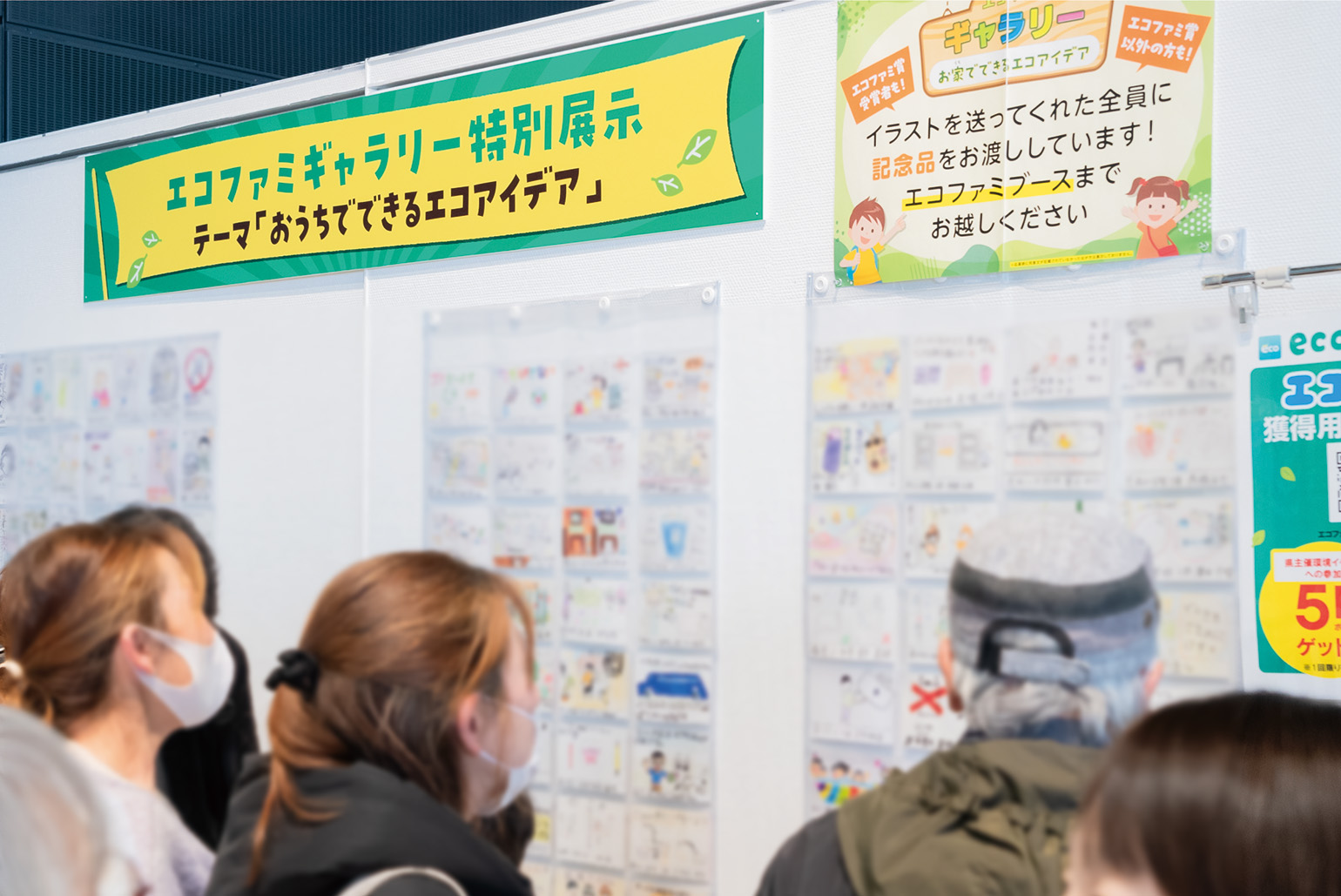 その他、お子様によるイラストや「南三陸少年少女自然調査隊」による壁新聞の展示、ミライ地球ガチャ、うちエコ診断、むすび丸やヤマトグループ「クロネコ・シロネコ」とのグリーティング、牛乳パックからポケットティッシュボックスをつくるワークショップなども開催し、多くの方にご観覧・ご参加いただきました。