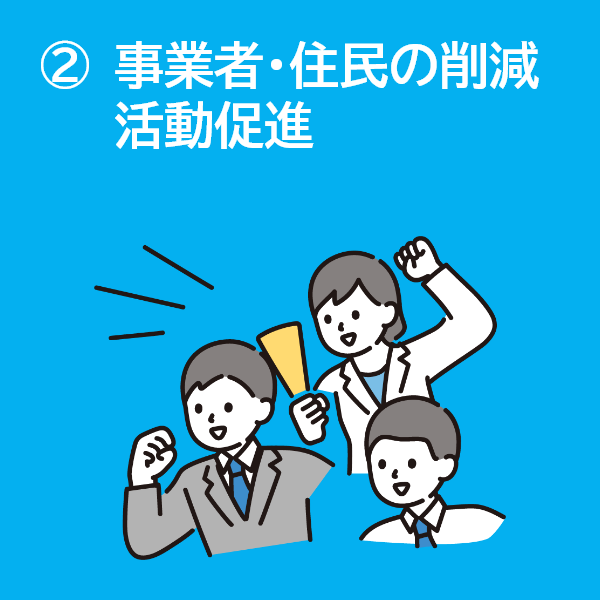 温室効果ガス排出量を2030(令和12)年度までに2013(平成25)年度比で50%削減します。